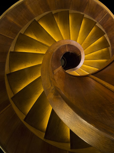 7. Деревянная винтовая лестница, ведущая в кафе VIP-класса в здании Nebotičnik, Любляна, Словения.
